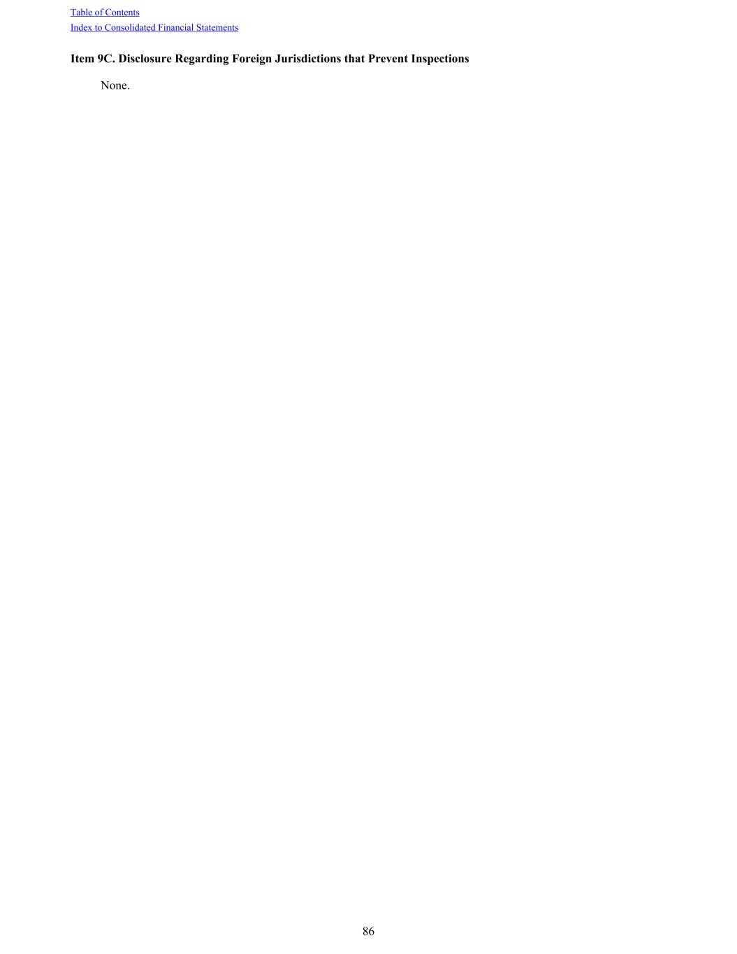 Item 9C. Disclosure Regarding Foreign Jurisdictions that Prevent Inspections None. Table of Contents Index to Consolidated Financial Statements 86